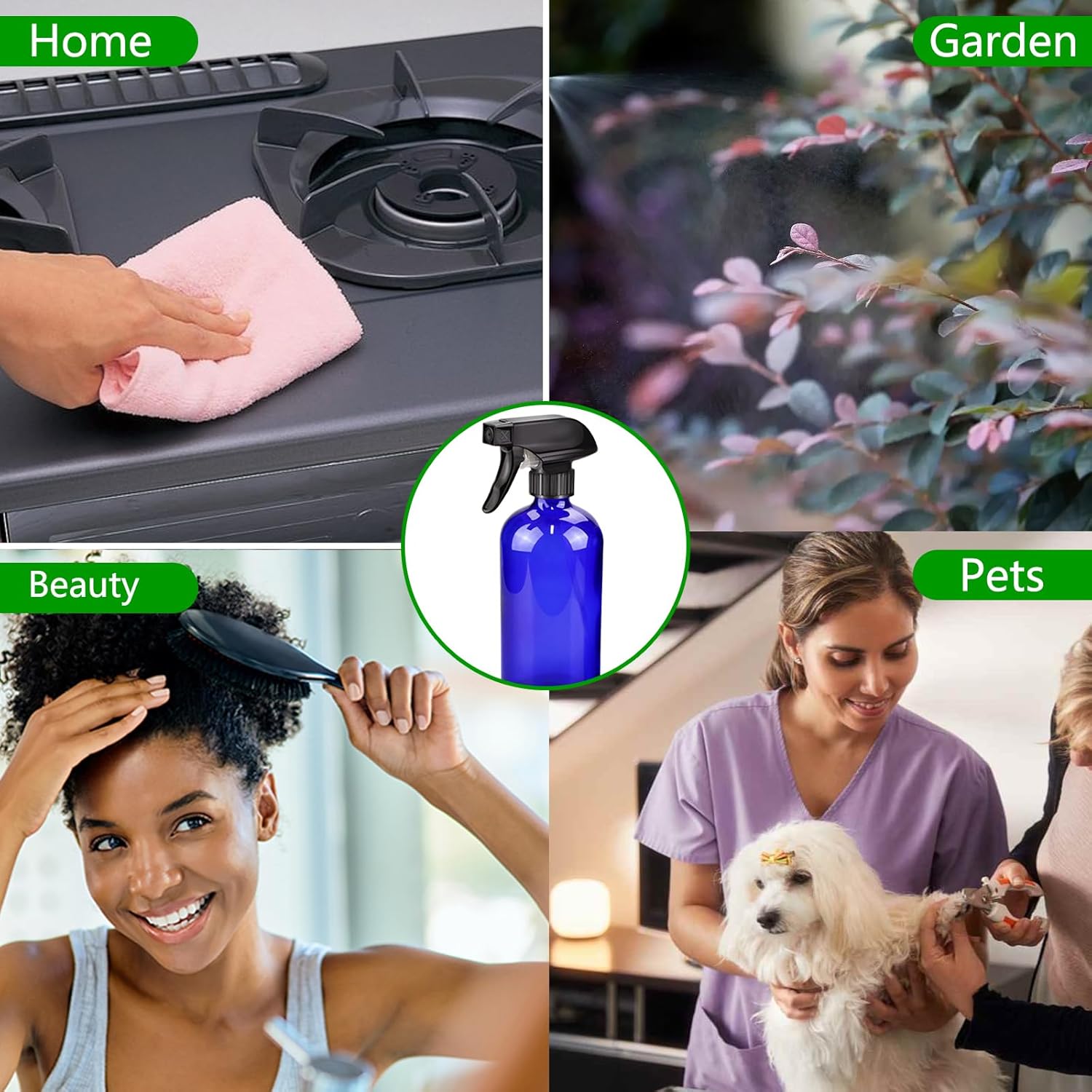 16oz Glass Spray Bottles,2-Pack Refillable Empty Spray Bottl for Cleaning, Hair Care, Plants – Adjustable Nozzl – Blue