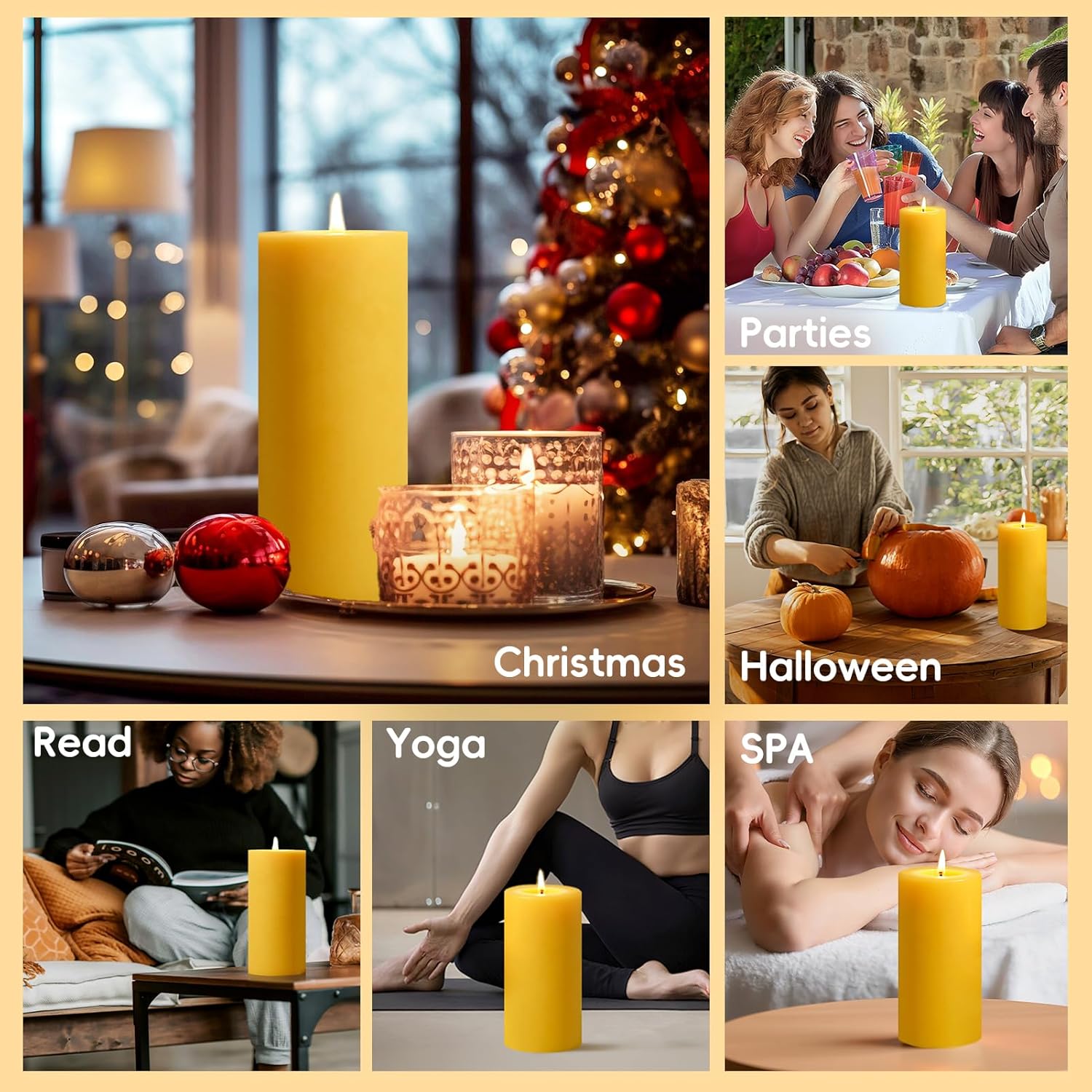 Elegant-Multi:Beeswax pillar Candles are great gifts for friends,family and loved ones.pillar Candles with natural honey scent and health benefits-can be used as prayer,Christmas,fireplace,lighting,emergency,wedding,church candles,perfect for all-night celebrations,parties and festivals.You can place it on the dining table,coffee table,bedroom,living room and other home decora to bring a warm and comfortable atmosphere to the space