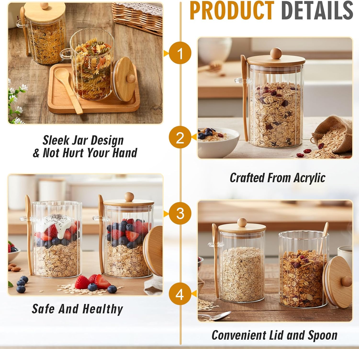 2 reviews for 2 Sets Large Airtight Glass Jar 25 oz Overnight Oats Containers with Bamboo Lids Spoons Oatmeal Container Decorative Food Storage Jar for Cereal Coffee Tea Flour Sugar Spice