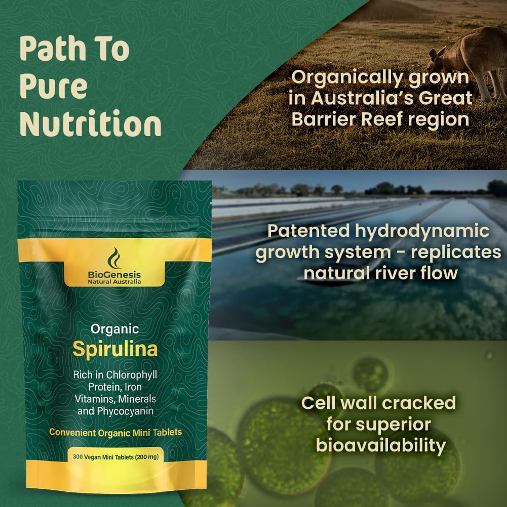 COMPLETE AUSTRALIAN SUPERGREENS DUO: This bundle includes 300 Mini Tablets of Organic Spirulina and 300 Mini Tablets of Organic Chlorella (600 total). Sourced exclusively from the pristine Great Barrier Reef region, BioGenesis is the only certified “Australian Made & Grown” brand. Our algae is cultivated in mineral-rich spring water and sunlight—never in sugar-fed bioreactors—delivering pure, traceable nutrition you can trust.