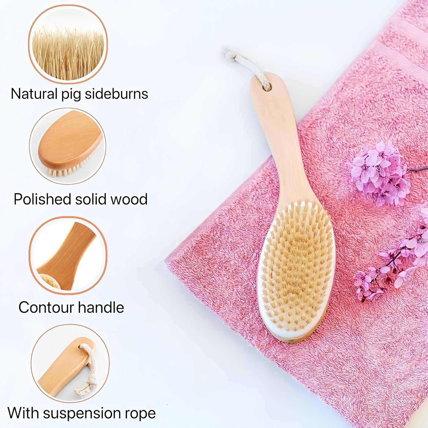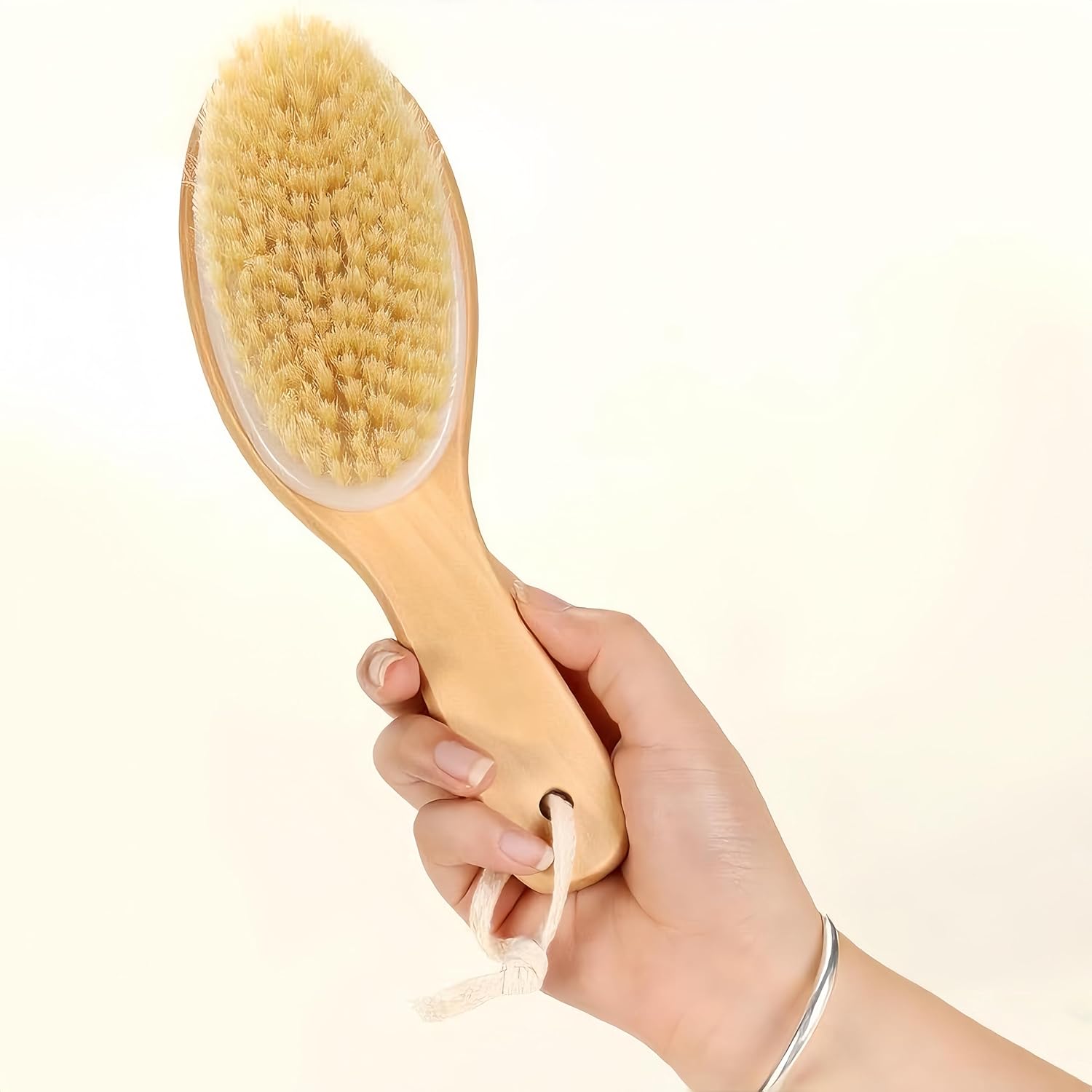 I bought this to test the hype around dry brushing and honestly didn’t expect much. Pleasant surprise: it feels well-made right out of the box. The wood is smooth (no splinters or varnish smell), the head is sturdy, and the bristles are that sweet spot between “effective” and “ouch.” First use felt a bit scratchy—as dry brushes do—but by the third session it softened just enough while still doing the job.Value for money is where it shines. I’ve seen near-identical brushes at fancy stores for 2–3x the price, and this works exactly the same. A few practical notes after two weeks of daily use:• The contoured handle sits nicely in the hand so you’re not death-gripping it around elbows and knees.• Bristle shed was minimal—maybe three or four loose ones on day one, none since.• It covers a good amount of skin per pass, so a quick three-minute routine before the shower is realistic.• Rinses clean and dries fast if you prop it bristles-down by a window.Small nitpicks: the handle gets a bit slick if your hands are damp (I wrapped a thin elastic near the base and it solved it), and the little insert directions are vague—YouTube “dry brushing basics” if you’re new.Bottom line: solid build, does exactly what it should, and you’re not paying a spa markup for a simple tool. If you want to start dry brushing without overthinking it, this is a great buy.
