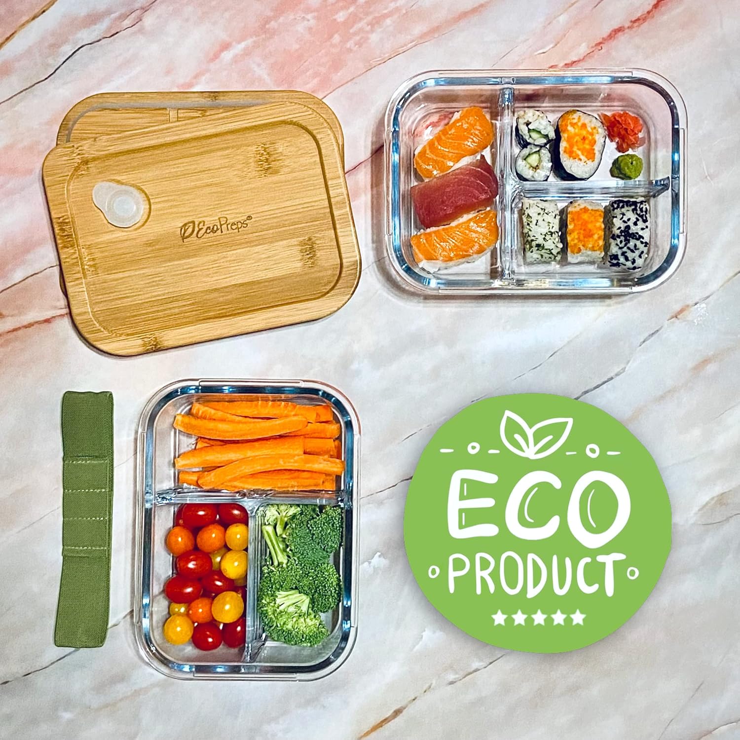 INTELLIGENT, LEAK-RESISTANT DESIGN: EcoPreps PATENTED bamboo glass storage containers include a silicone seal and vent to keep foods fresh; unlike regular containers, our bento glass containers with bamboo lids stay airtight to prevent spills and leaks