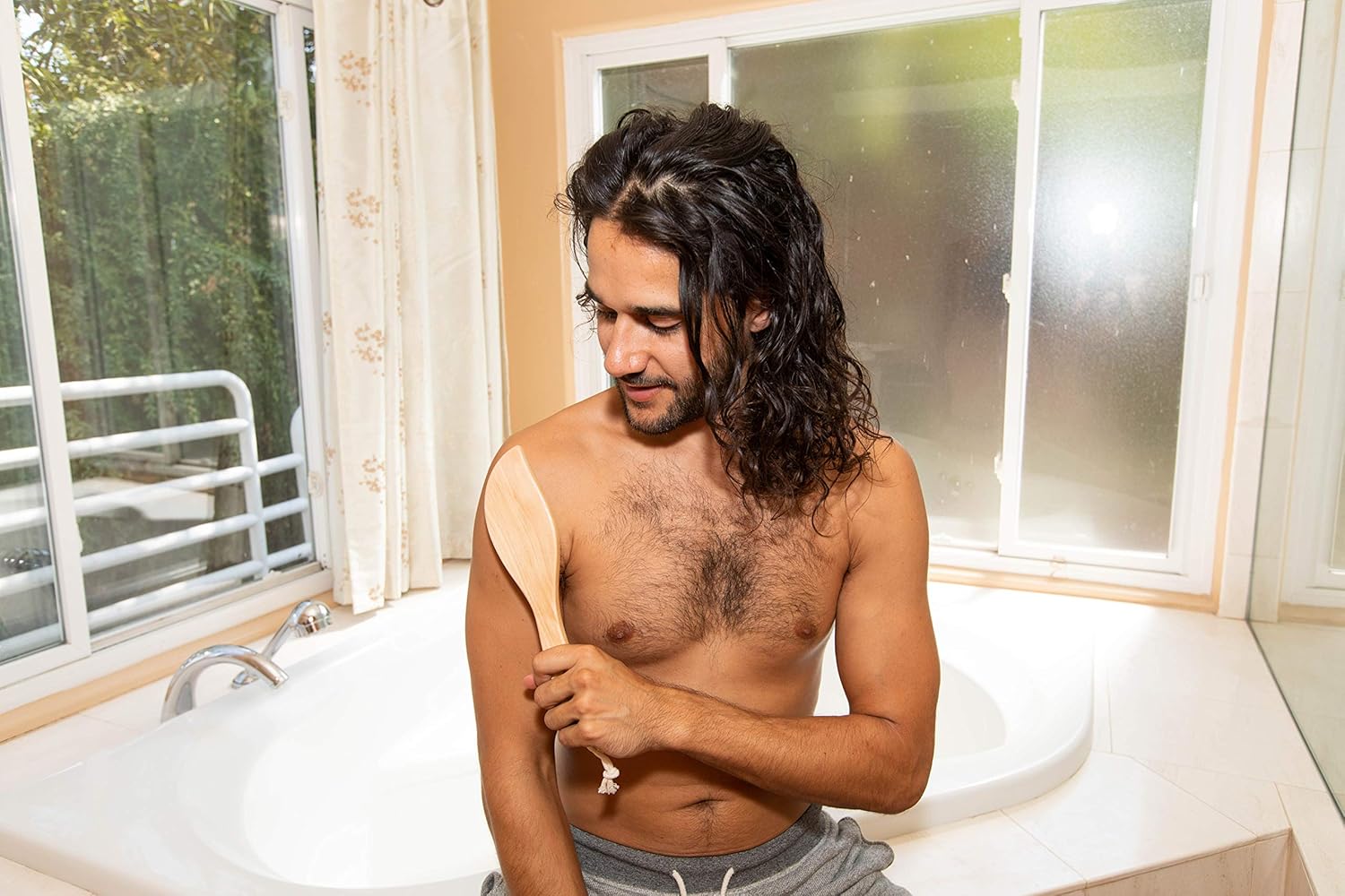 Excellent body brush. Definitely what I was looking for. Im a guy, and I don’t need anything else on my back scrubber than bristles. I needed a better clean and something I wasn’t ashamed to use in the showers at the gym. Straight forward product, great craftsmanship. Handle is not too long or too short, it’s just right. Great protective coating to protect it from rot, and it’s one single peace of wood. My back is super smooth after only 3 days. Arrived on time, can’t say anything negative.