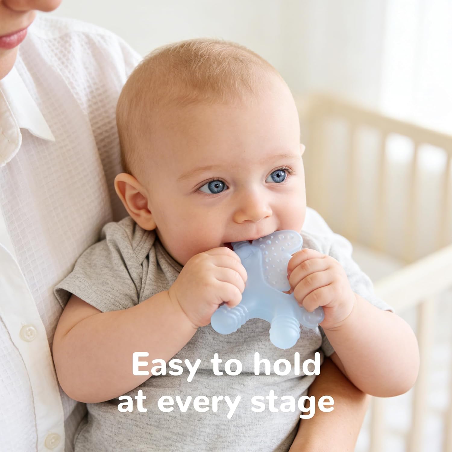EASY FOR LITTLE HANDS — Ergonomic size, weight, and shape make it simple to grab and hold so babies can chew comfortably without losing their grip.