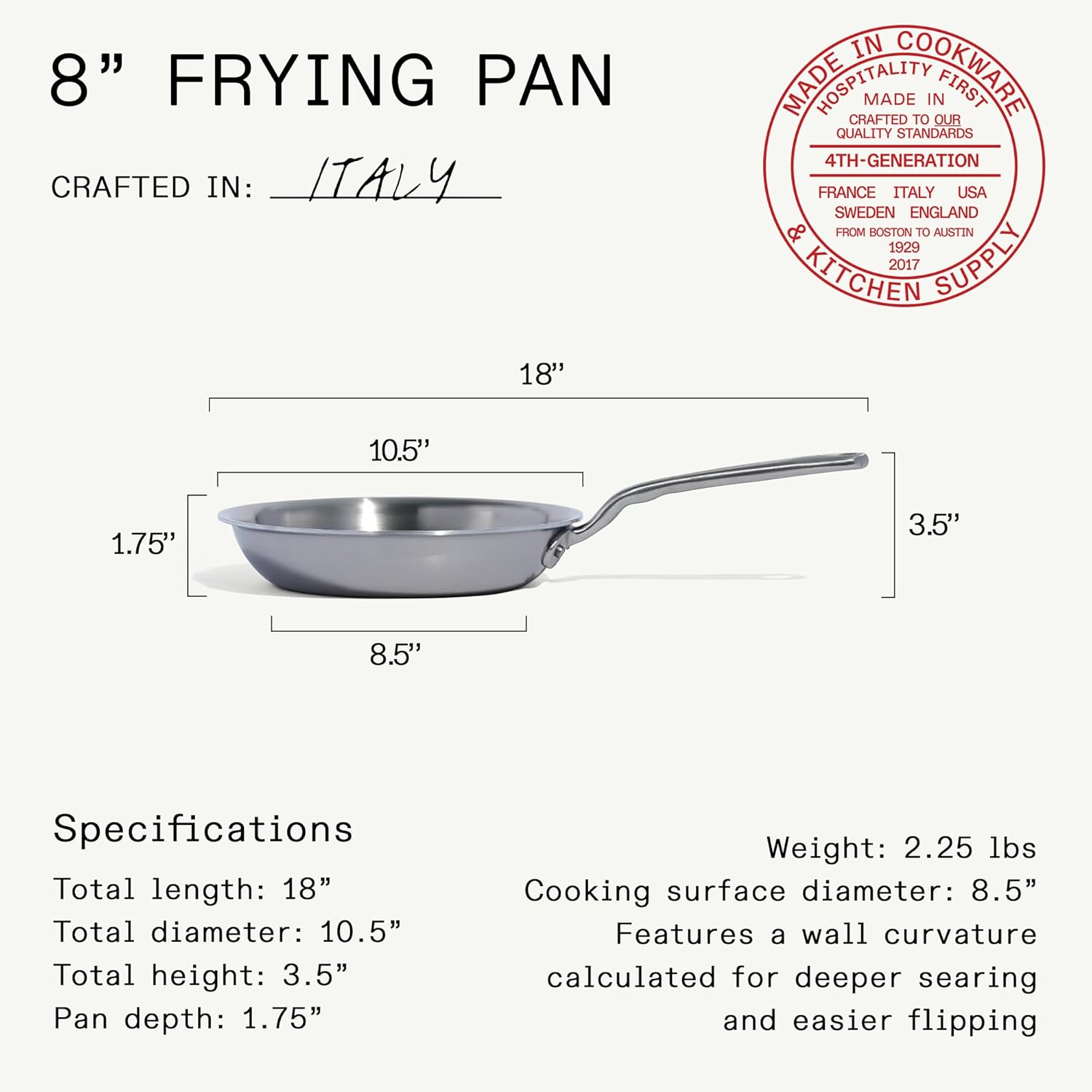 10 reviews for Made In Cookware – 8-Inch Stainless Steel Frying Pan – 5 Ply Stainless Clad – Professional Cookware – Crafted in Italy – Induction Compatible