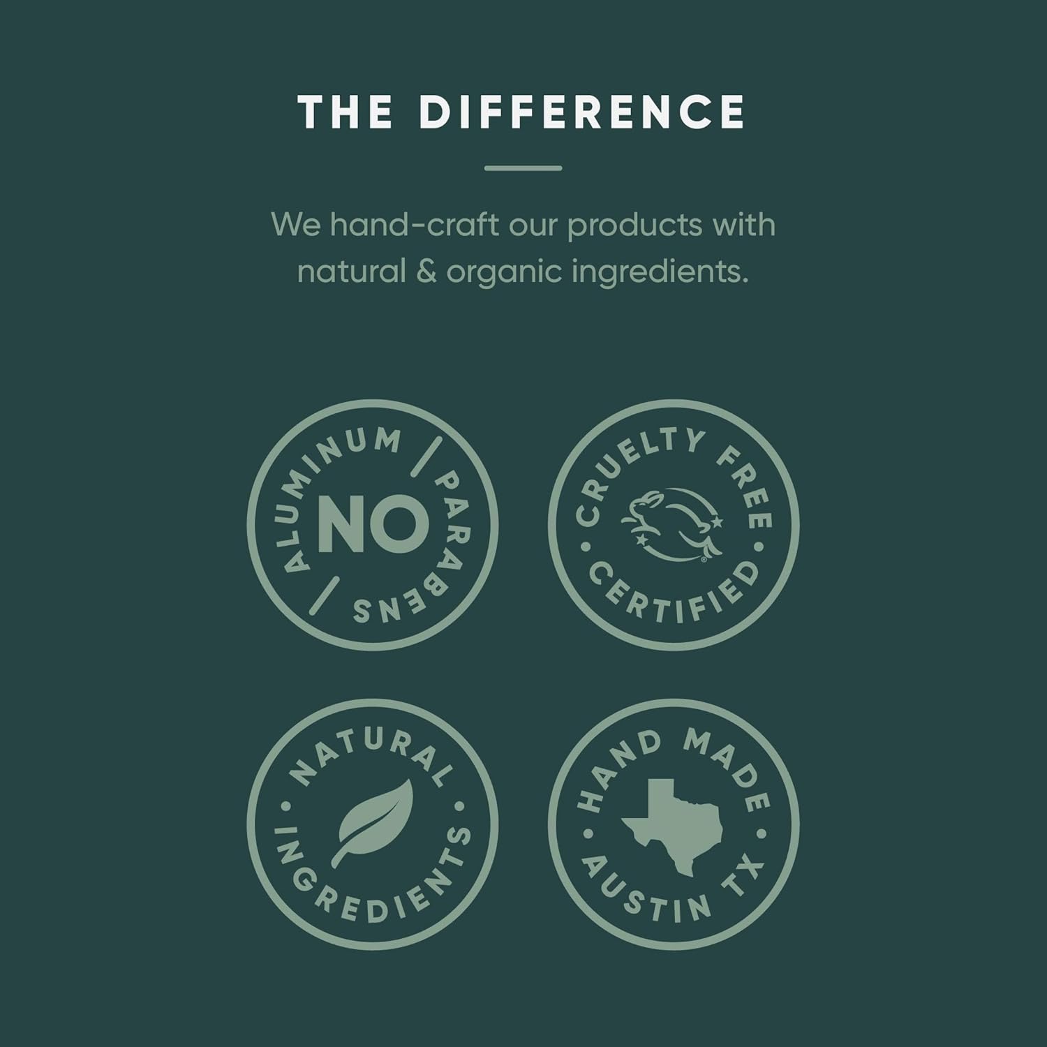 NO B.S. (bad stuff) – we mean it! No Aluminum, No Parabens, No Synthetic Fragrance, No Petroleum, and our products are Gluten Free, Non-GMO, and Cruelty Free Certified by Leaping Bunny. Our handcrafted formula has stayed the same for over a decade and all products are made in the USA.