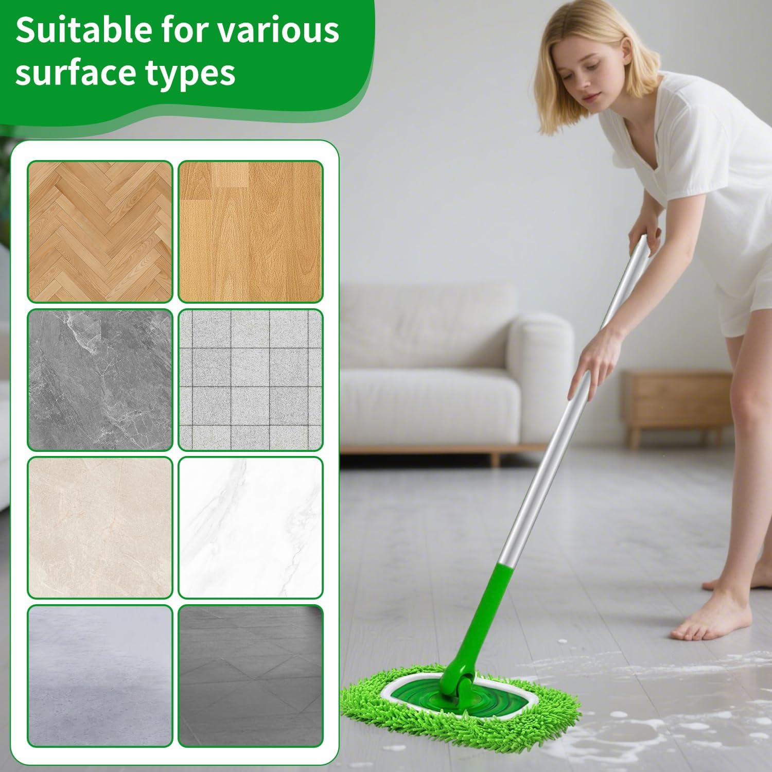 Safe on all Floor Types Multi-scenario use:Our reusable mop pads are gentle enough for hardwood floors, yet powerful enough to tackle pet hair, debris, and grime on vinyl or ceramic tile. Experience a comprehensive clean for all your floors with one versatile product