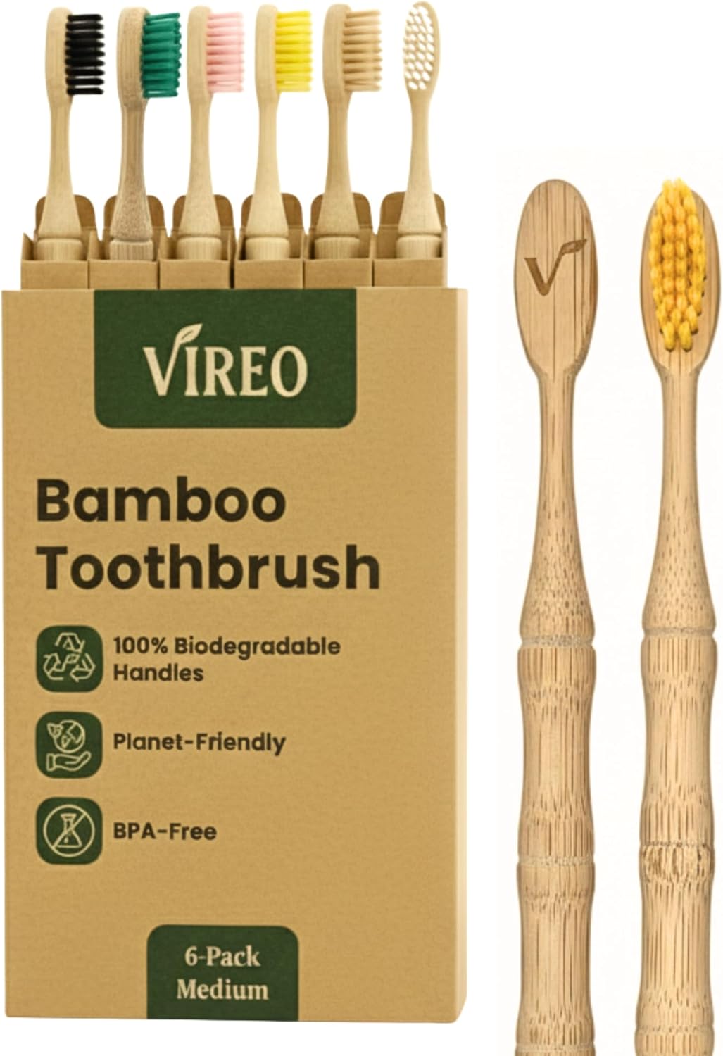 6 reviews for VIREO Bamboo Toothbrushes Medium Bristles 6-Pack – BPA-Free Eco-Friendly Toothbrushes for Adults – Biodegradable, Natural Wooden Toothbrush