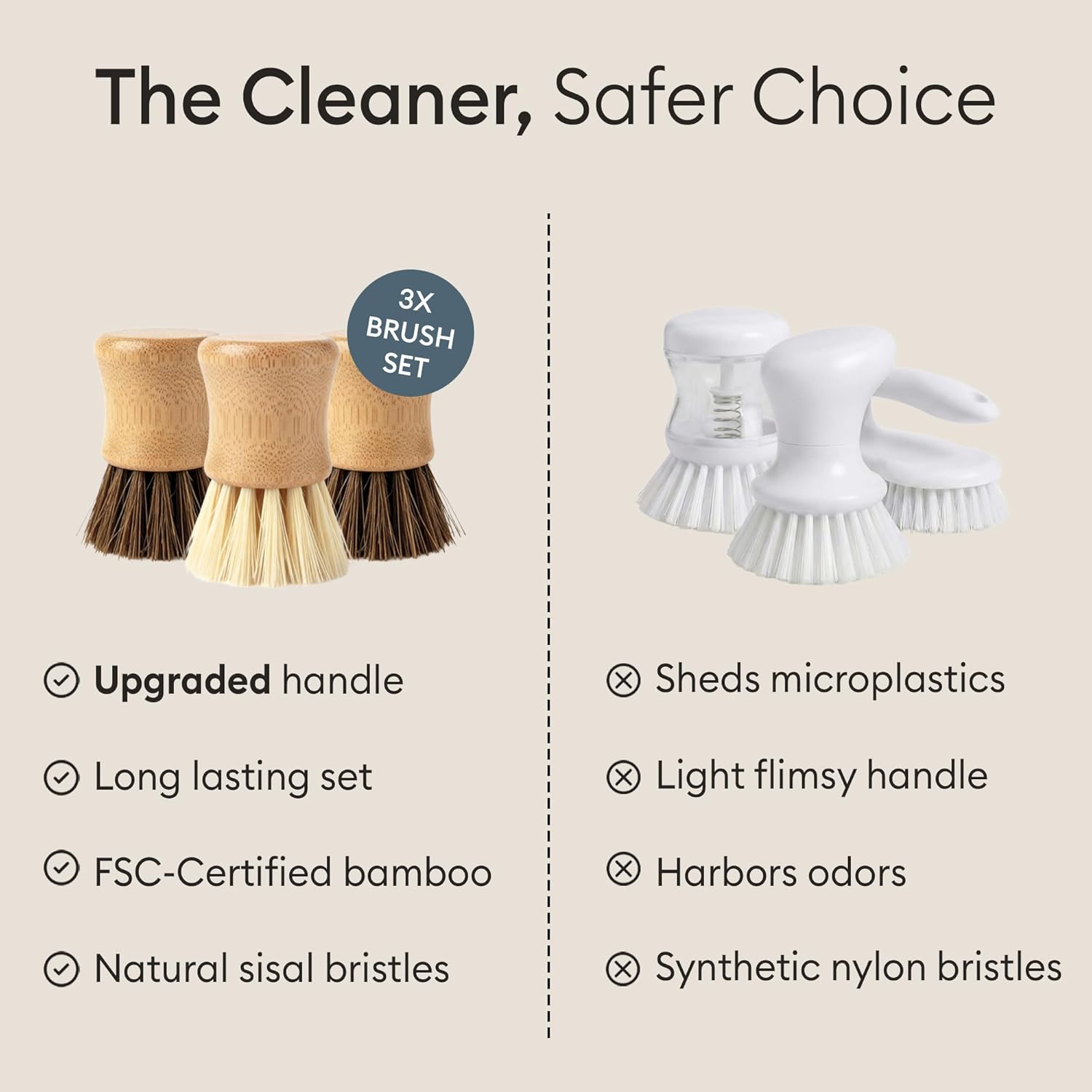 SUPERIOR CLEANING EXPERIENCE: Longer bristles ensure an efficient clean, while the FSC certified bamboo handle and elegant, functional design make these brushes a stylish addition to your cleaning routine.